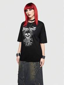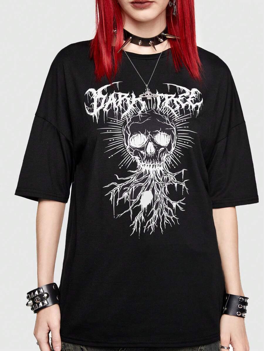 Grunge Punk Women's Skull & Letter Printed Short Sleeve T-shirt