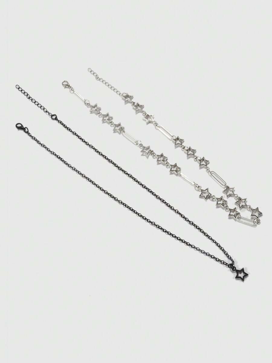 Grunge Punk Women's Star Charm Necklace Set With Chain