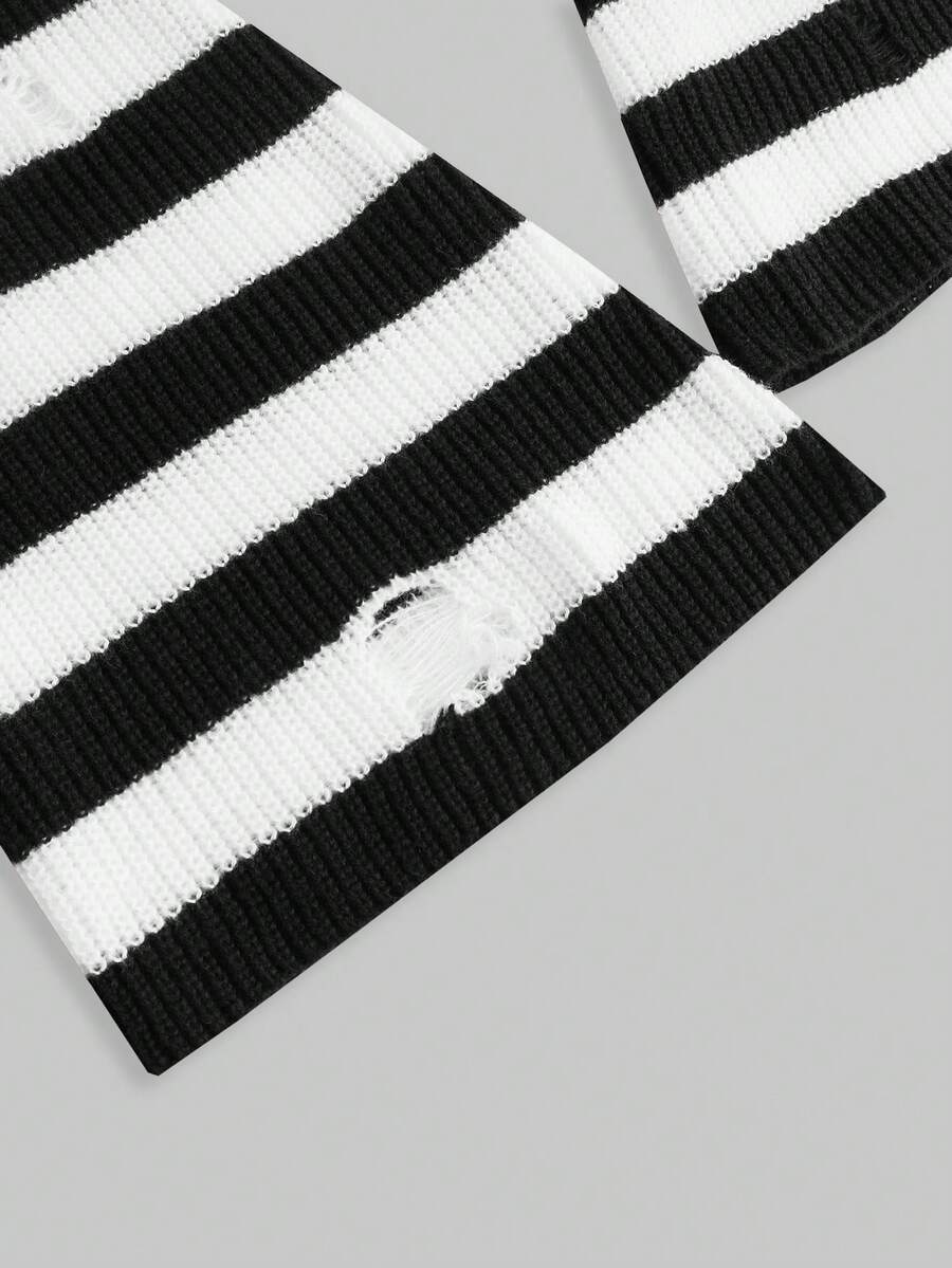 Grunge Punk Women's Striped Super Short Hooded Sweater