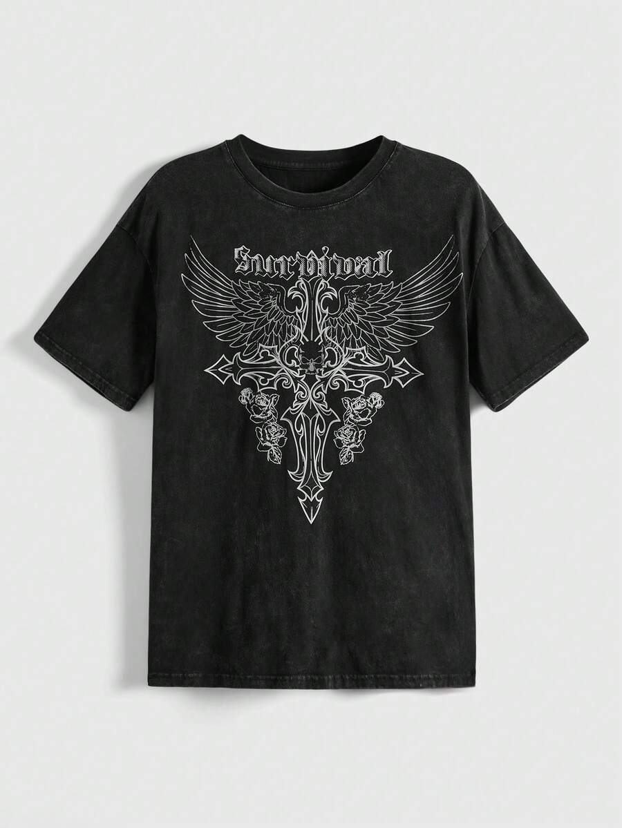Grunge Punk Women's Wing Cross Printed T-Shirt, School