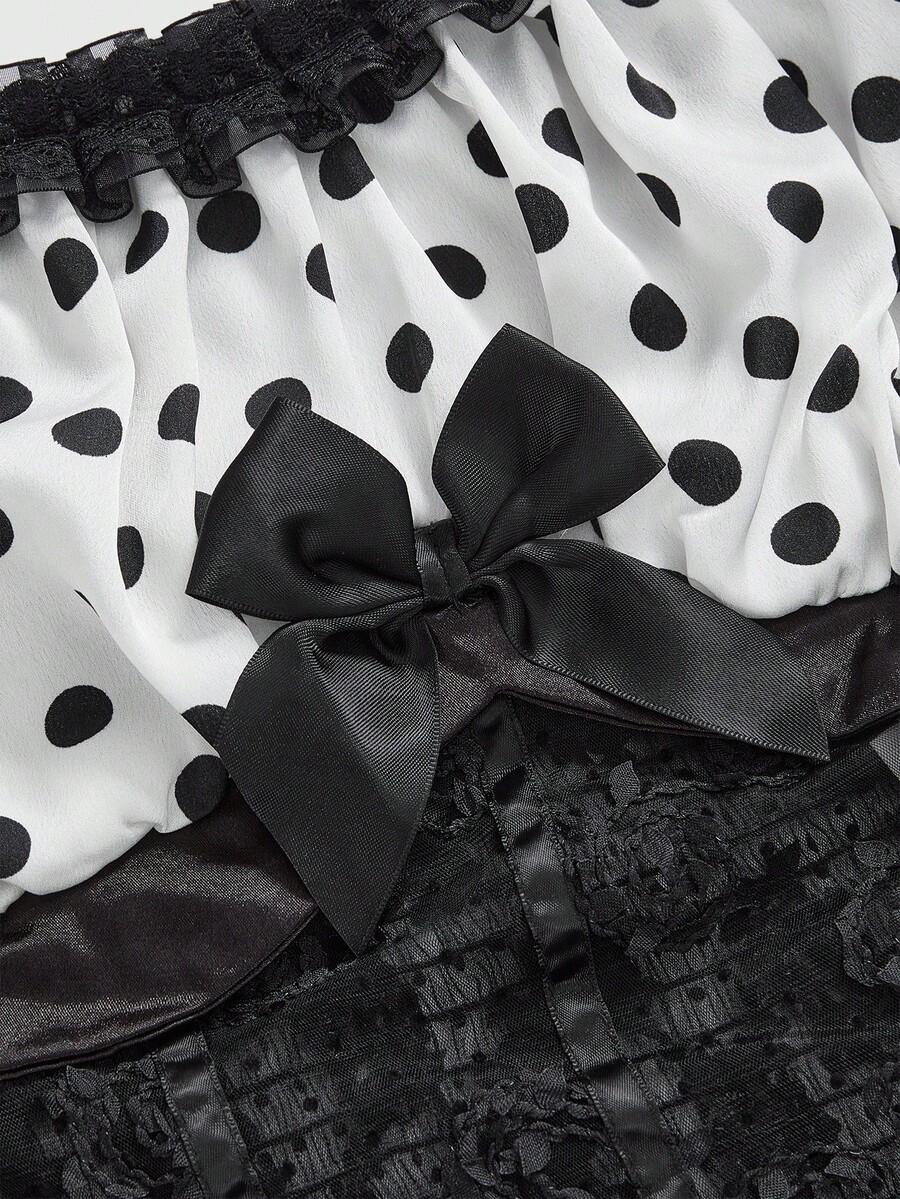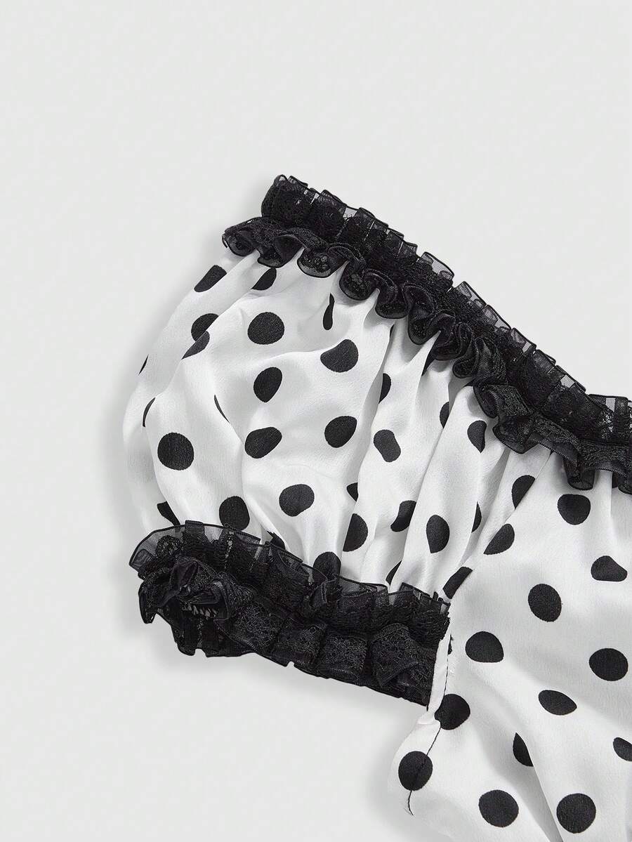 Grunge Punk Women's Y2K Polka Dot Top Contrast Lace Blouse