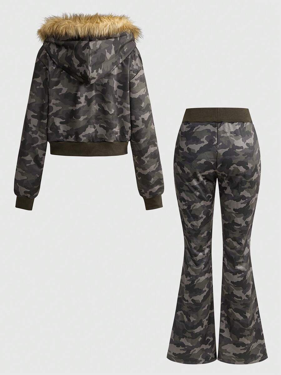 Grunge Punk Y2K Camo Print Hoodie And Sweatpants 2 Pieces Set For Women