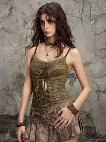 Grunge Punk Y2K Grunge Distressed Lace-Up Design Camisole Vest For Women