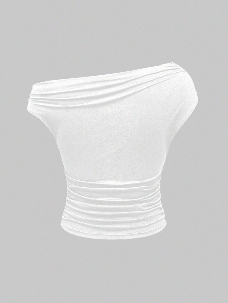 Grunge Punk Y2K Harajuku Style Women Cross Embroidery Cropped Slim Fit Oblique Shoulder T-Shirt