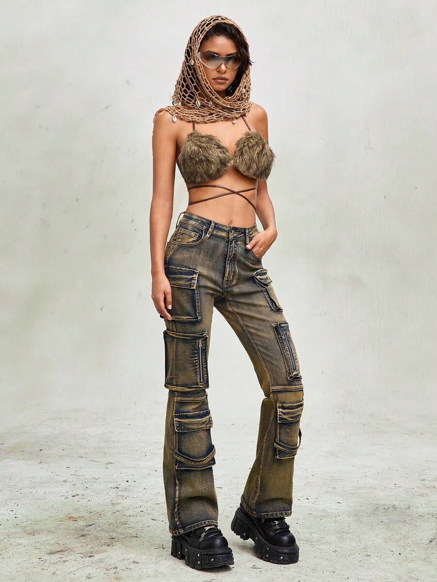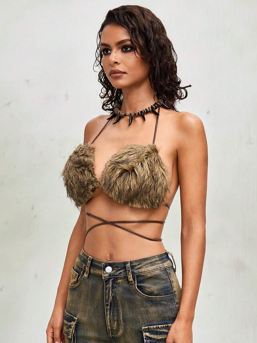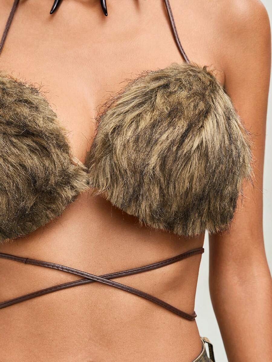 Grunge Punk Y2K Sexy Fluffy Bikini Top For Women