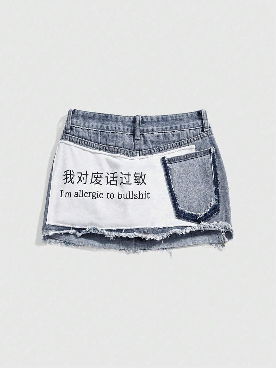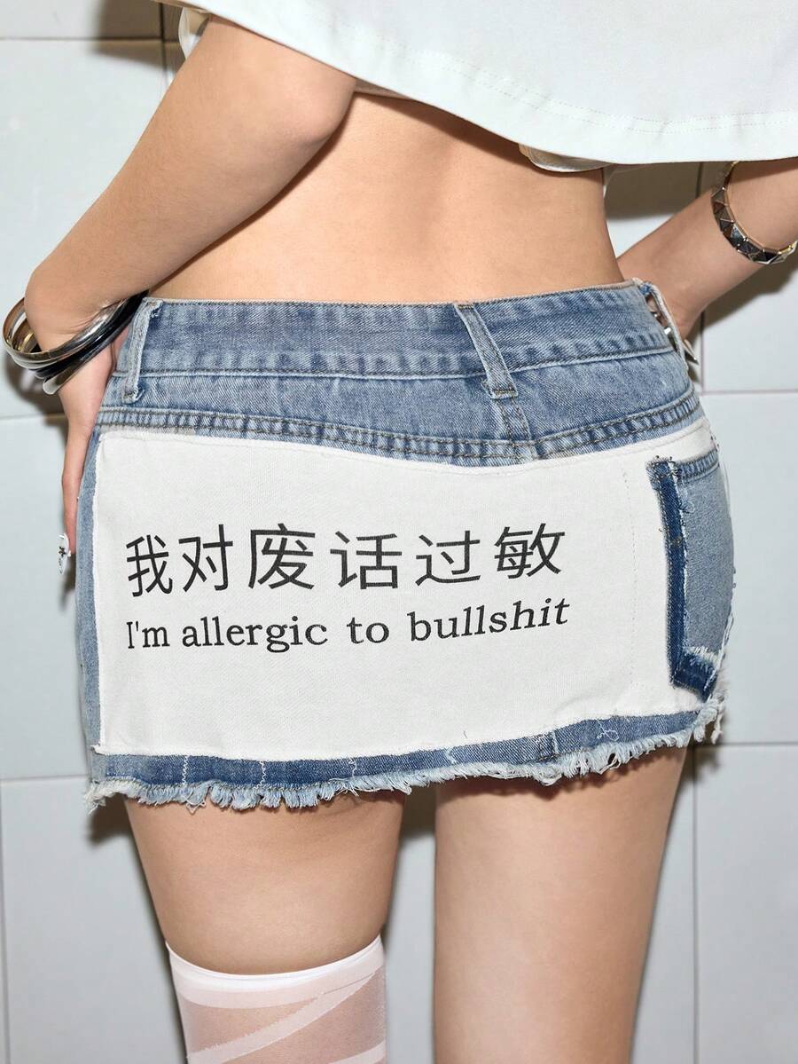Grunge Punk Y2K Streetwear Chic Chinese Slogan Print Remake Denim Mini Skirt For Women