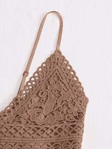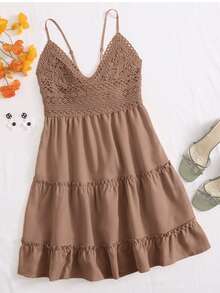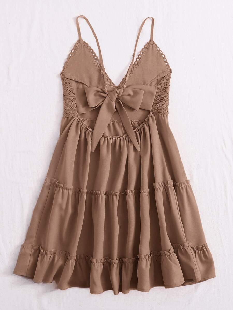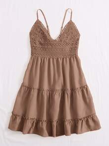 Guipure Lace Tie Backless Ruffle Hem Cami Dress