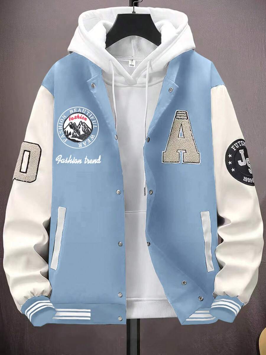 Guys 1pc Letter Graphic Colourblock Varsity Jacket