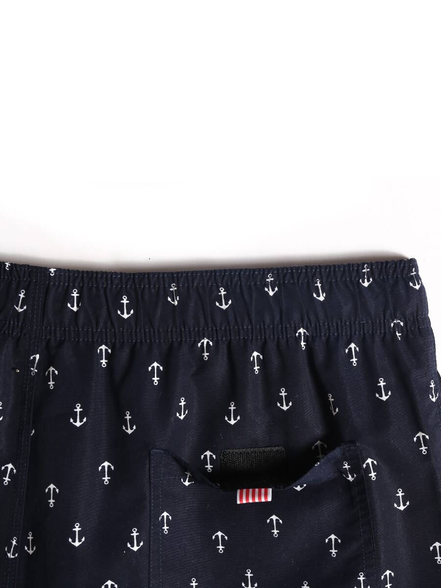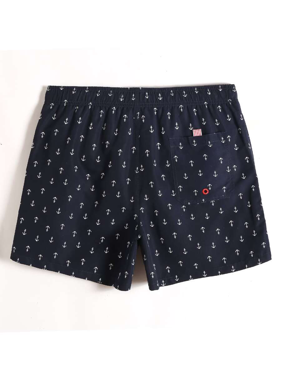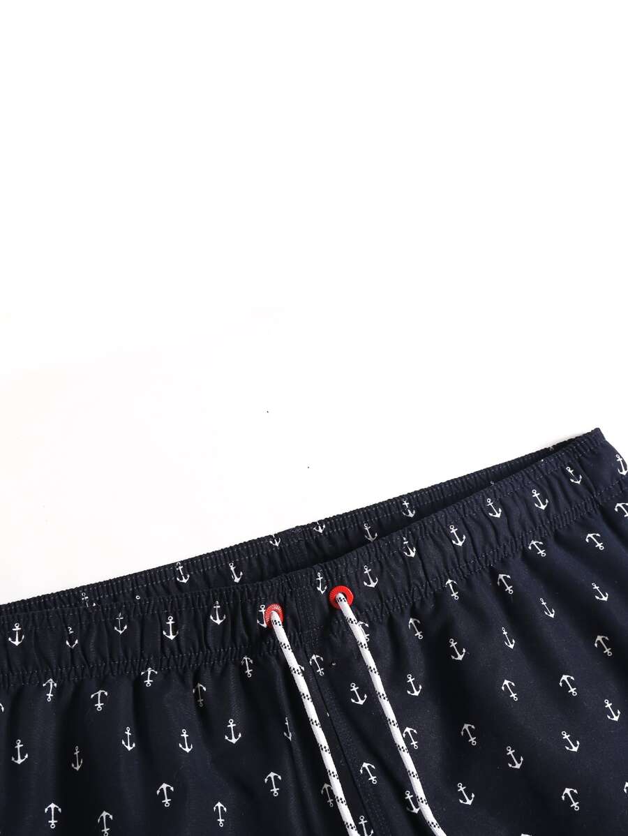 Guys Allover Anchor Print Drawstring Swim Trunks