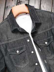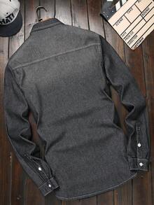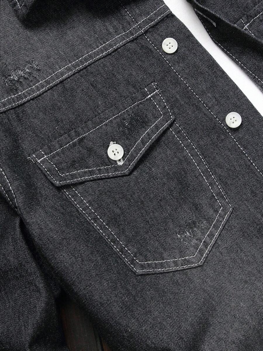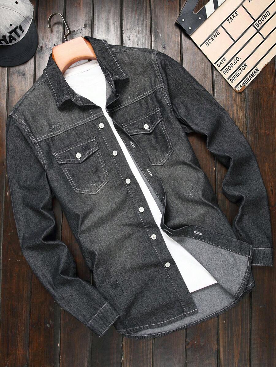 Guys Bleach Wash Flap Pocket Denim Shirt Without Tee