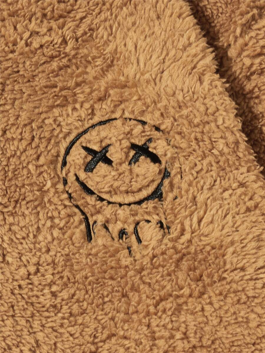 Guys Cartoon Embroidery Teddy Hoodie & Trousers