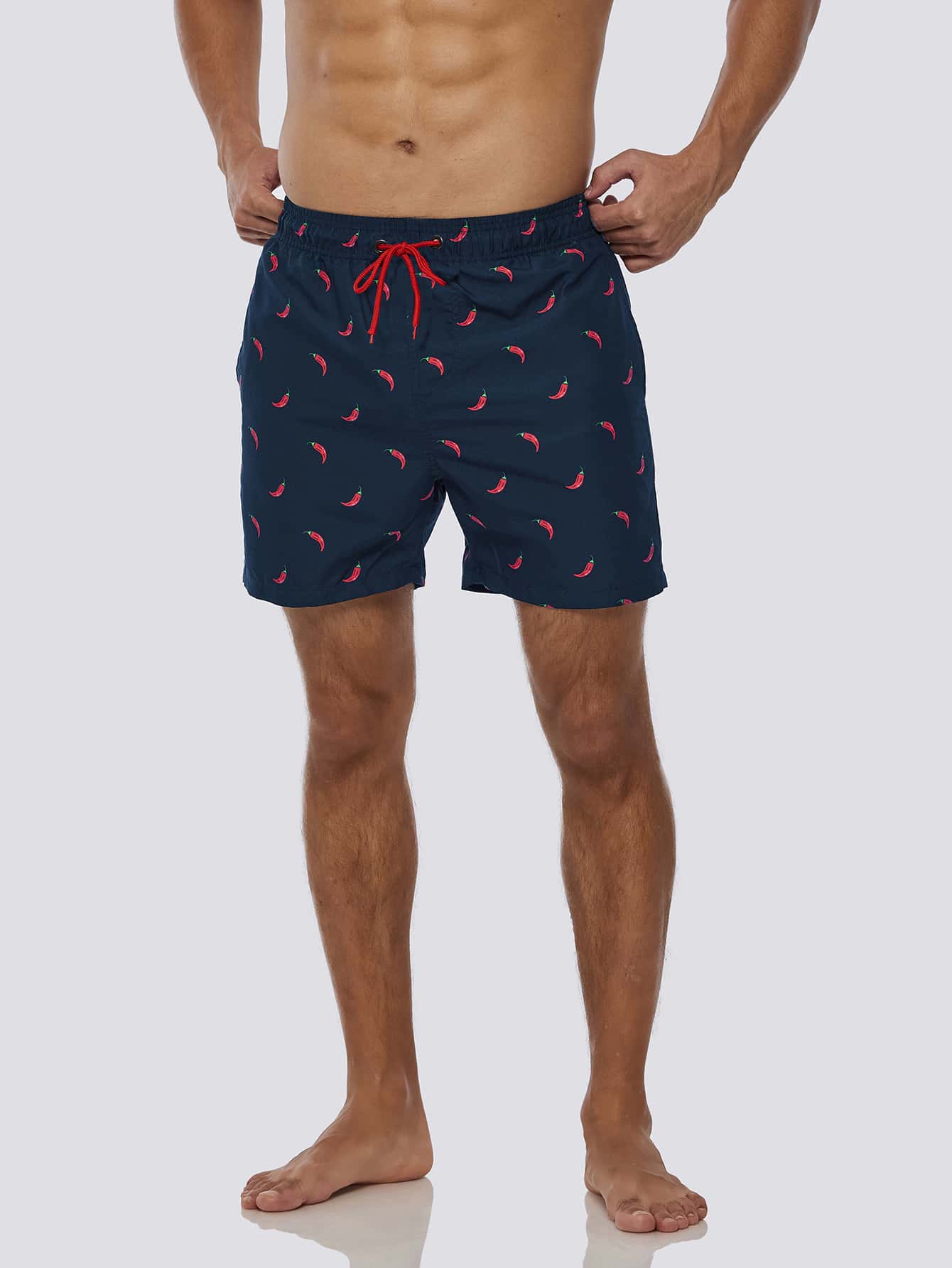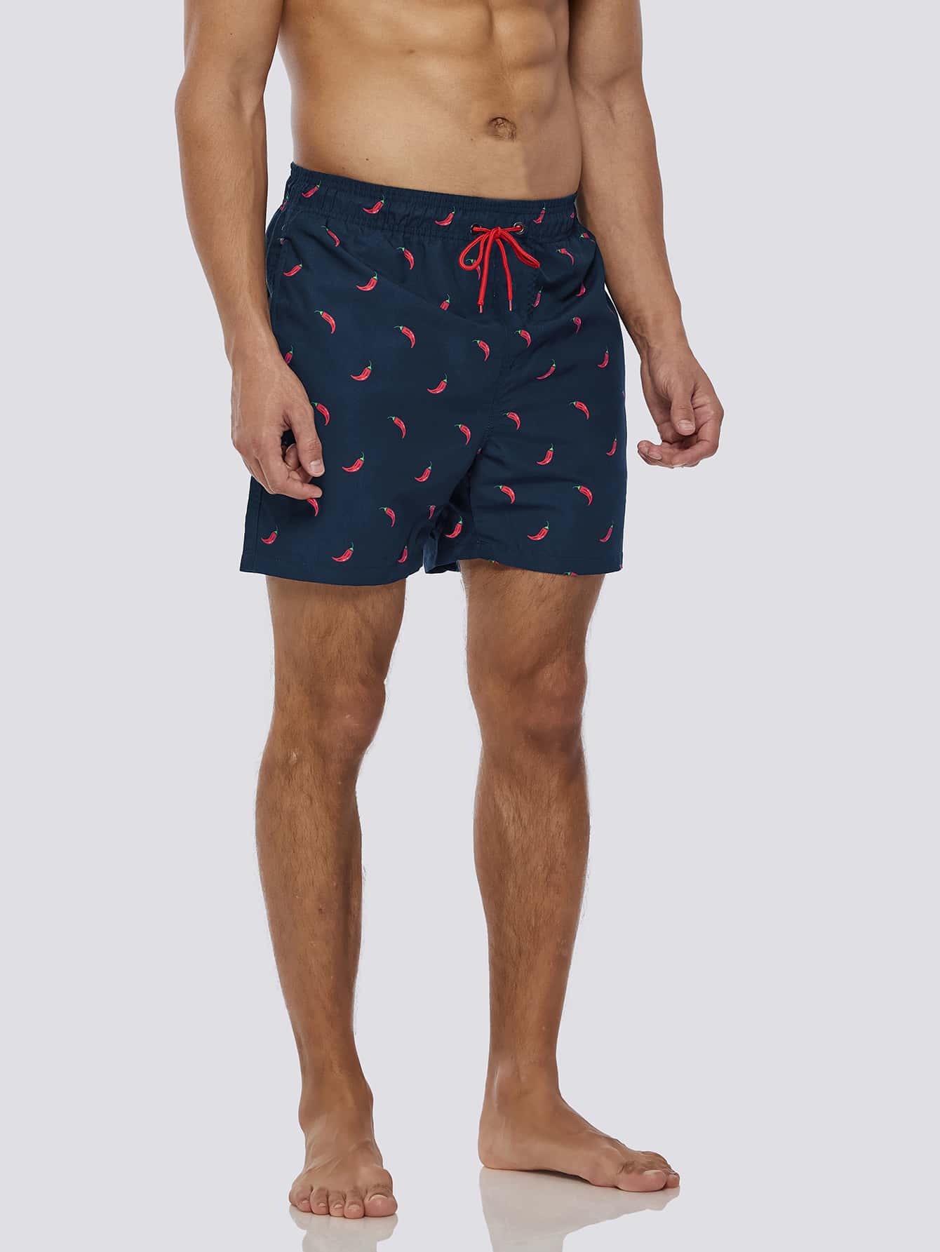 Guys Chili Print Drawstring Waist Swim Trunks