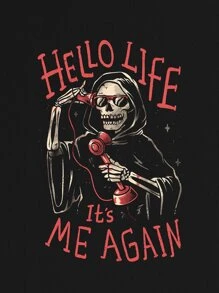 Guys Cotton Slogan & Skull Print Tee