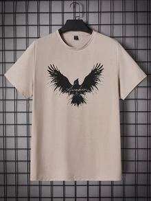 GENTILAND Guys Eagle & Letter Graphic Tee & Elastic Waist Shorts