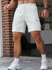 Guys Flap Pocket Side Drawstring Waist Cargo Shorts