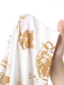 Guys Floral Print Shirt & Drawstring Waist Shorts Set