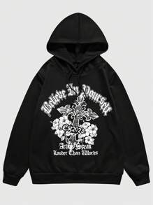 Guys Floral & Slogan Graphic Drawstring Hoodie