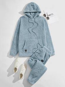 Guys Kangaroo Pocket Drawstring Flannel Hoodie & Trousers