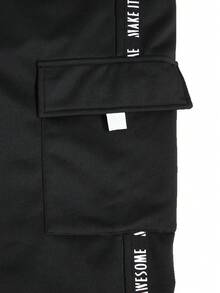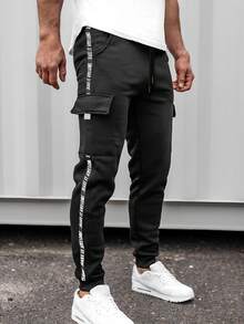 Guys Letter Graphic Contrast Tape Flap Pocket Side Drawstring Waist Cargo Pants