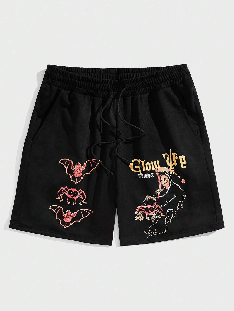 Guys Letter Graphic Drawstring Waist Shorts