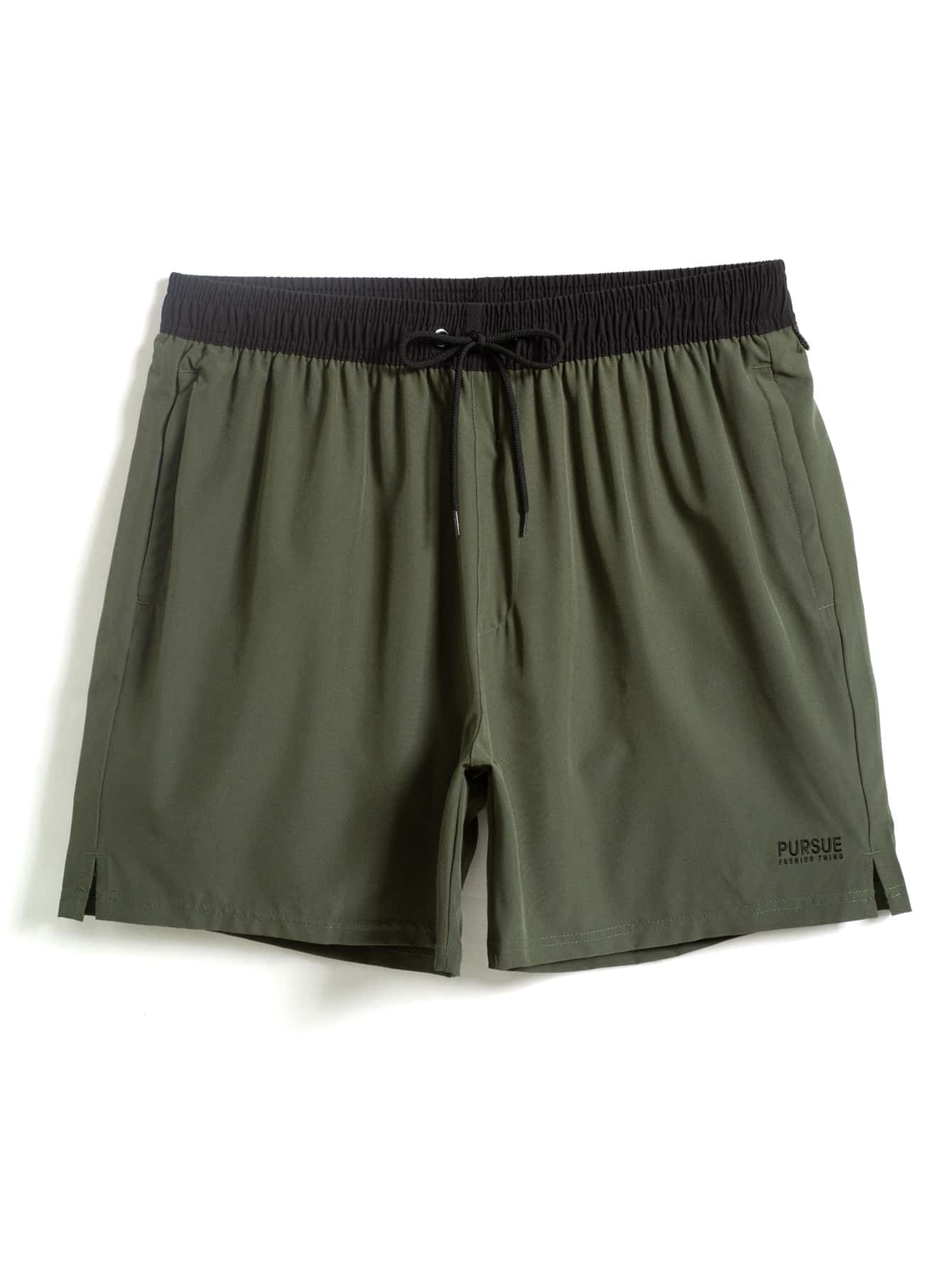 Guys Letter Graphic Drawstring Waist Swim Trunks & Compression Liner