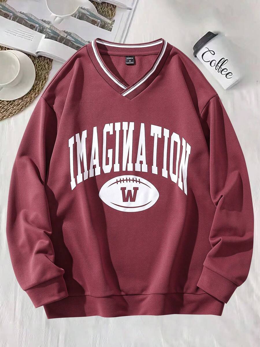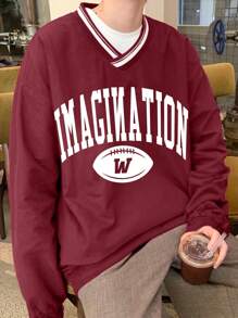 Guys Letter Graphic Drop Shoulder V Neck Sweatshirt