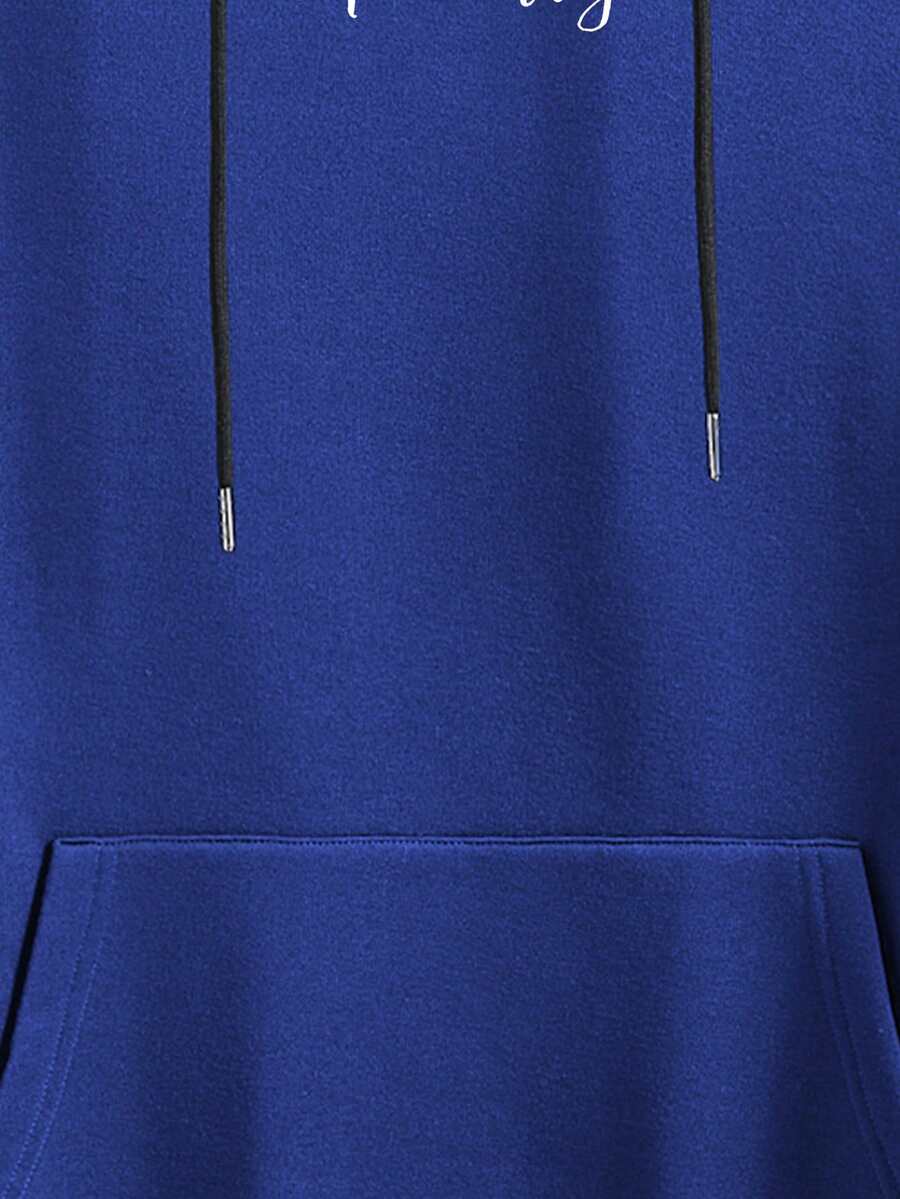Guys Letter Graphic Kangaroo Pocket Drawstring Hoodie