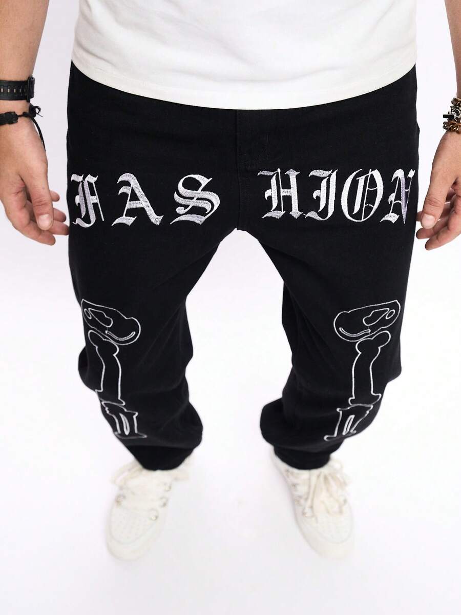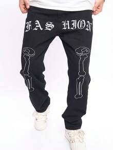 Guys Letter Graphic Straight Leg Jeans