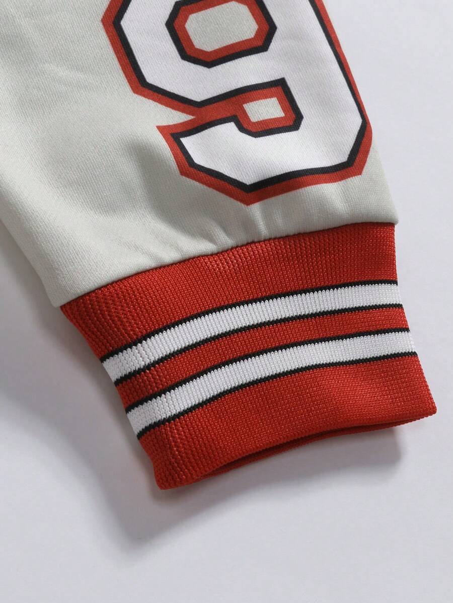 Guys Letter Graphic Striped Trim Drop Shoulder Varsity Jacket Without Hoodie