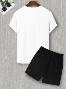 Guys Letter Graphic Tee & Drawstring Waist Shorts