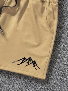 Guys Mountain Print Drawstring Waist Shorts
