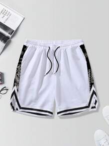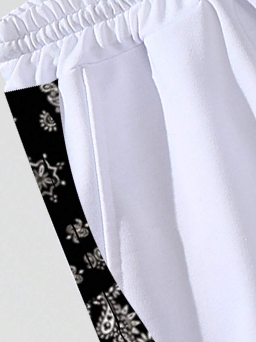 Guys Paisley Print Striped Trim Drawstring Waist Contrast Side Seam Shorts