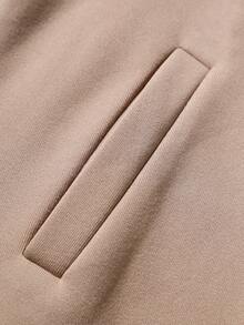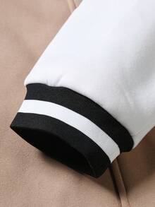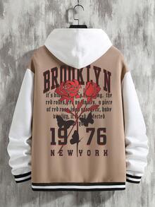 Guys Rose & Slogan Graphic Striped Trim Drop Shoulder Varsity Jacket Without Hoodie
