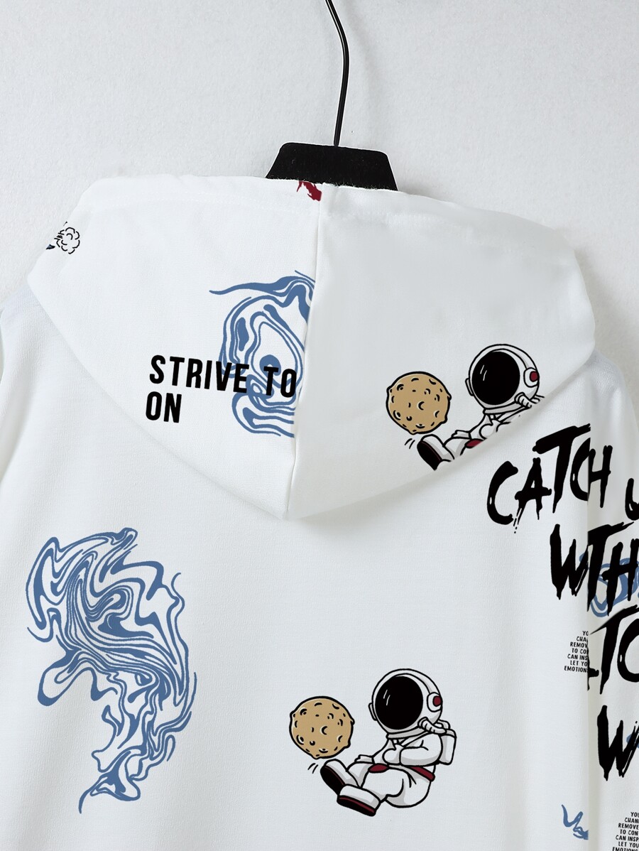 Guys Slogan & Cartoon Graphic Drawstring Hoodie