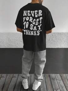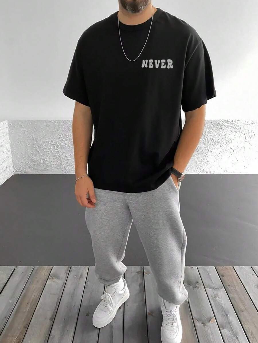 Guys Slogan Graphic Drop Shoulder Tee & Sweatpants