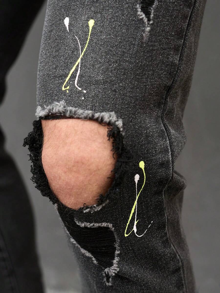 Guys Splash Ink Print Ripped Frayed Skinny Jeans