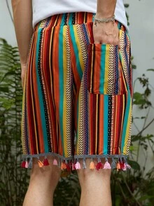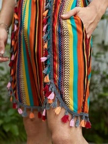 Guys Striped Print Tassel Trim Shorts