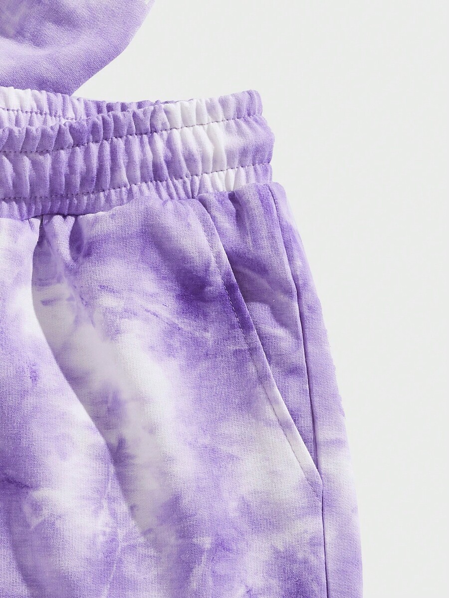 Guys Tie Dye Letter Graphic Pullover & Drawstring Waist Shorts