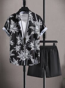 Guys Tropical Print Shirt & Drawstring Waist Shorts Without Tee
