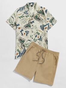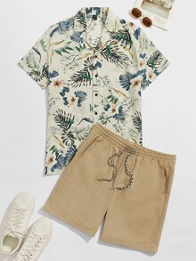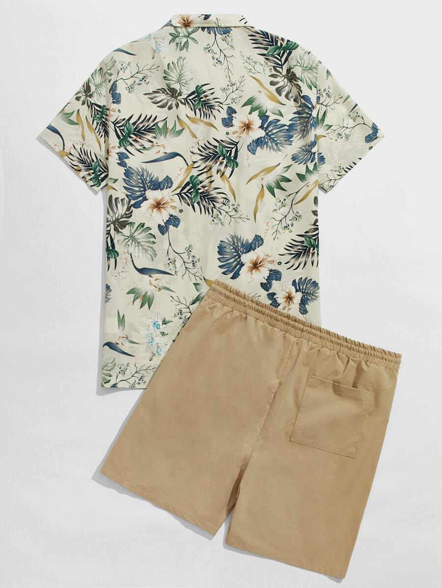 GENTILAND Guys Tropical Print Shirt & Drawstring Waist Shorts