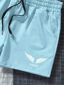 Guys Wings & Letter Graphic Drawstring Waist Shorts