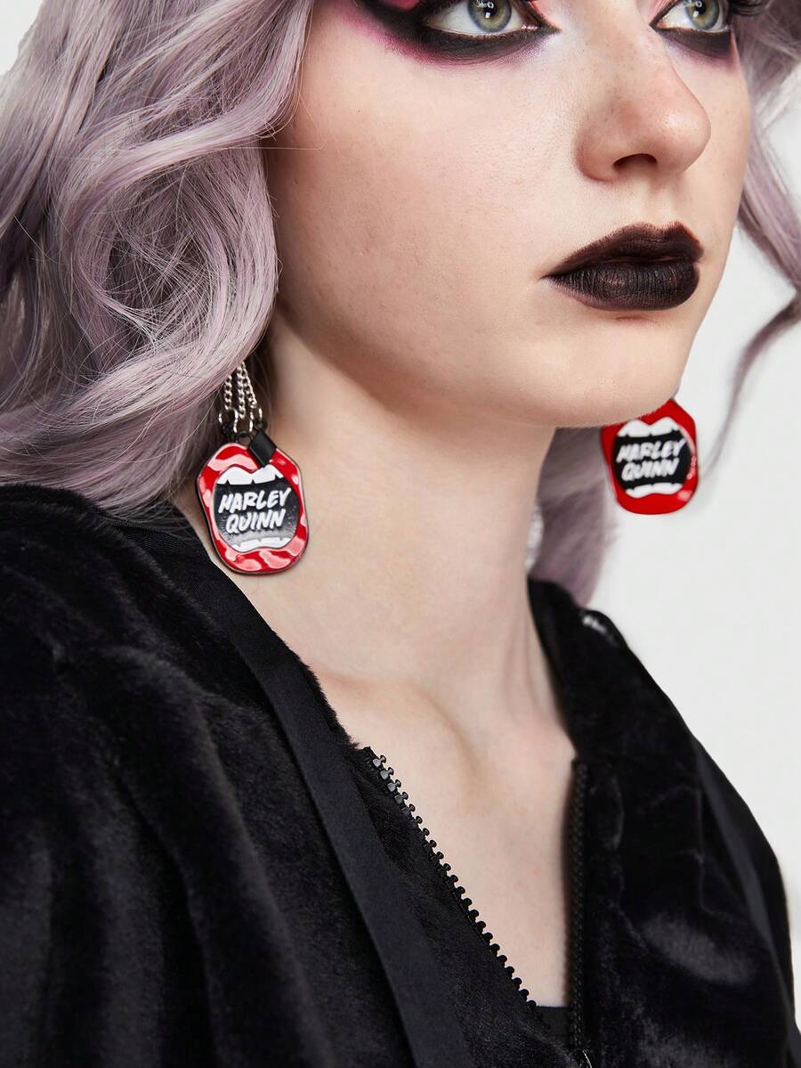 Harley Quinn | ROMWE 1pair Funky Zinc Alloy Letter Mouth Decor Drop Earrings For Women For Daily Decoration