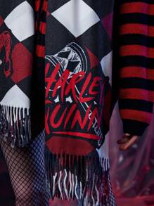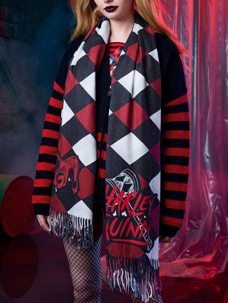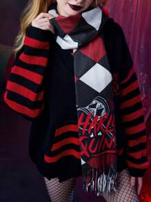 Harley Quinn | ROMWE 1pc Women Striped & Skull Pattern Fringe Hem Scarf