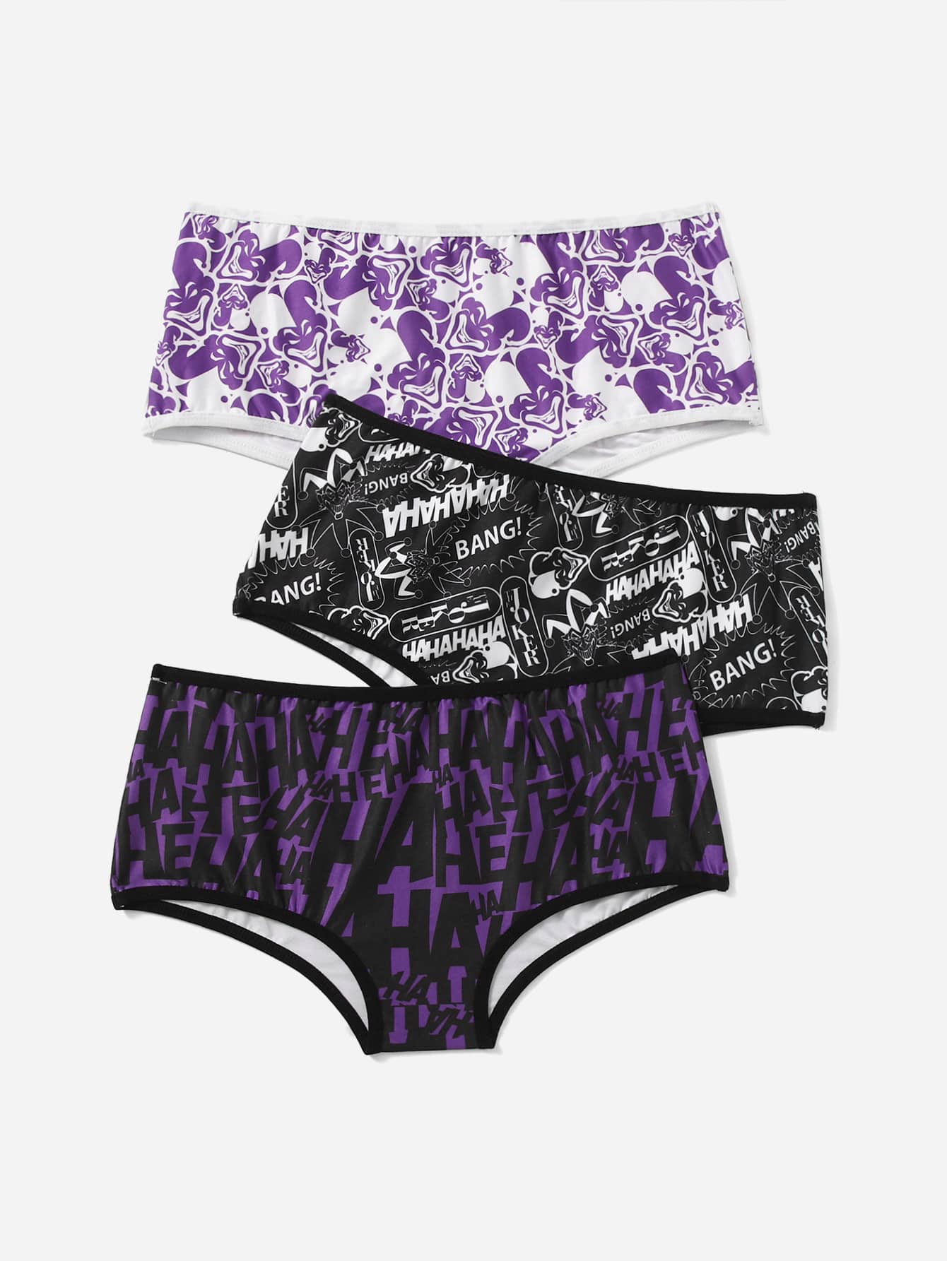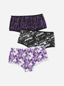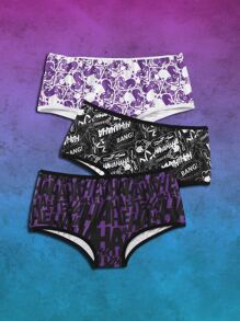 Harley Quinn | ROMWE 3pack Letter Cartoon Graphic Panty Set