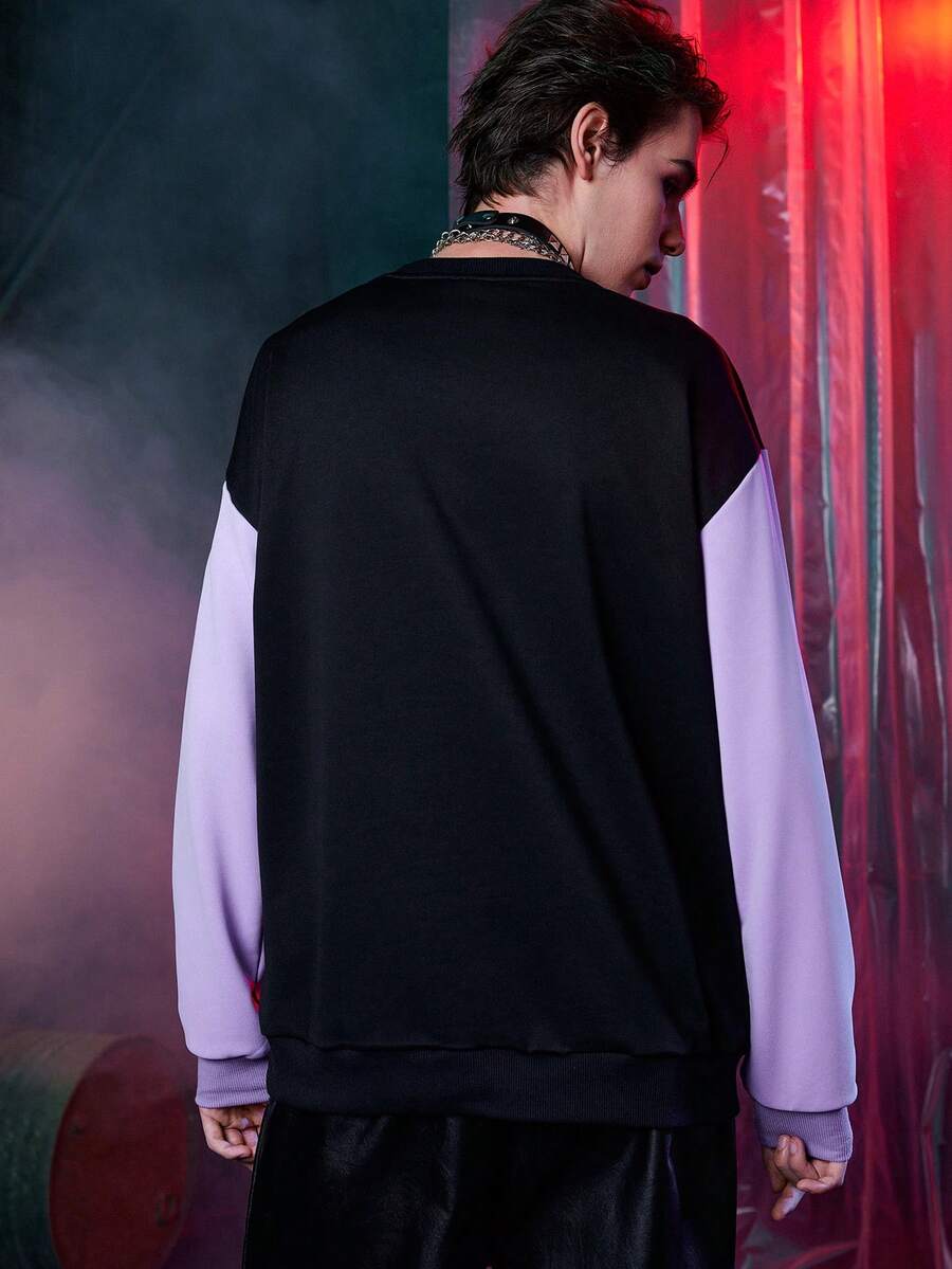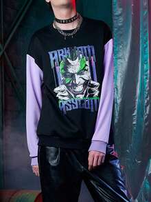 Harley Quinn | ROMWE Guys Skull & Letter Graphic Colorblock Drop Shoulder Sweatshirt