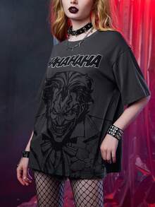 Harley Quinn | ROMWE Letter Figure Graphic Drop Shoulder Tee