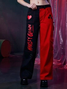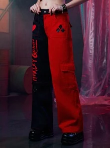 Harley Quinn | ROMWE Letter Graphic Colorblock Flap Pocket Jeans