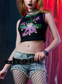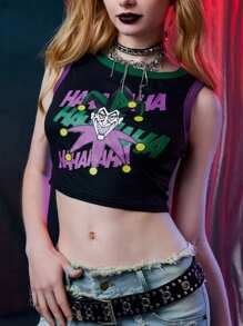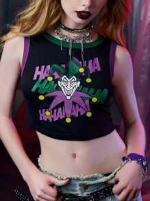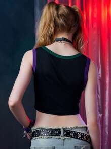 Harley Quinn | ROMWE Letter Graphic Contrast Binding Tank Top