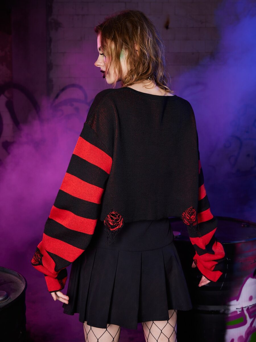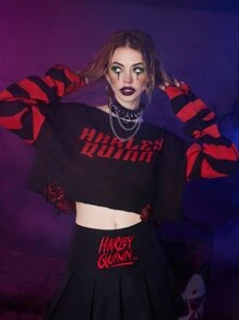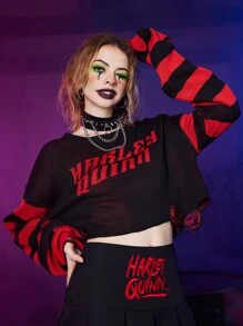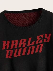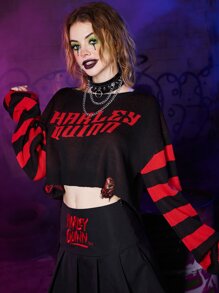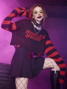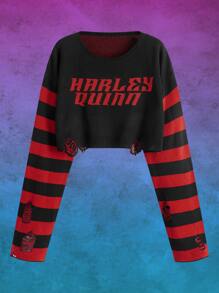 Harley Quinn | ROMWE Letter Striped Sleeve Jumper
