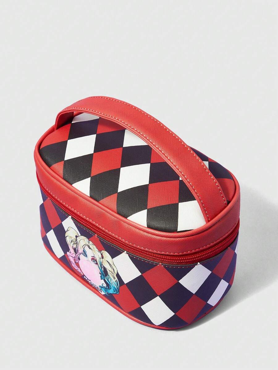 Harley Quinn | ROMWE Red/black/white Plaid Cosmetic Bag To Store Toiletries And Cosmetics
